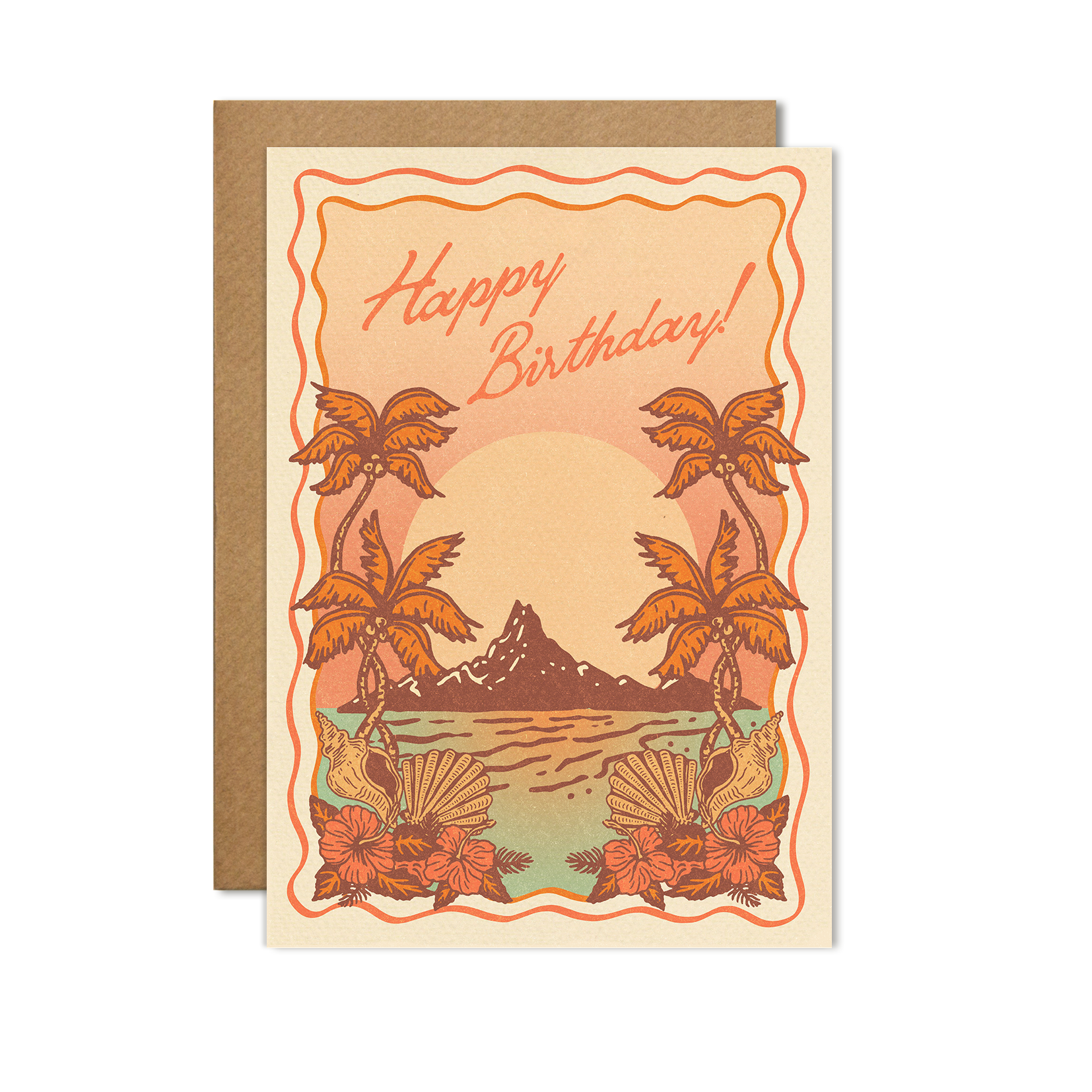 Step into the warm embrace of this unique vintage Pacific island-themed birthday card by Cai & Jo.
