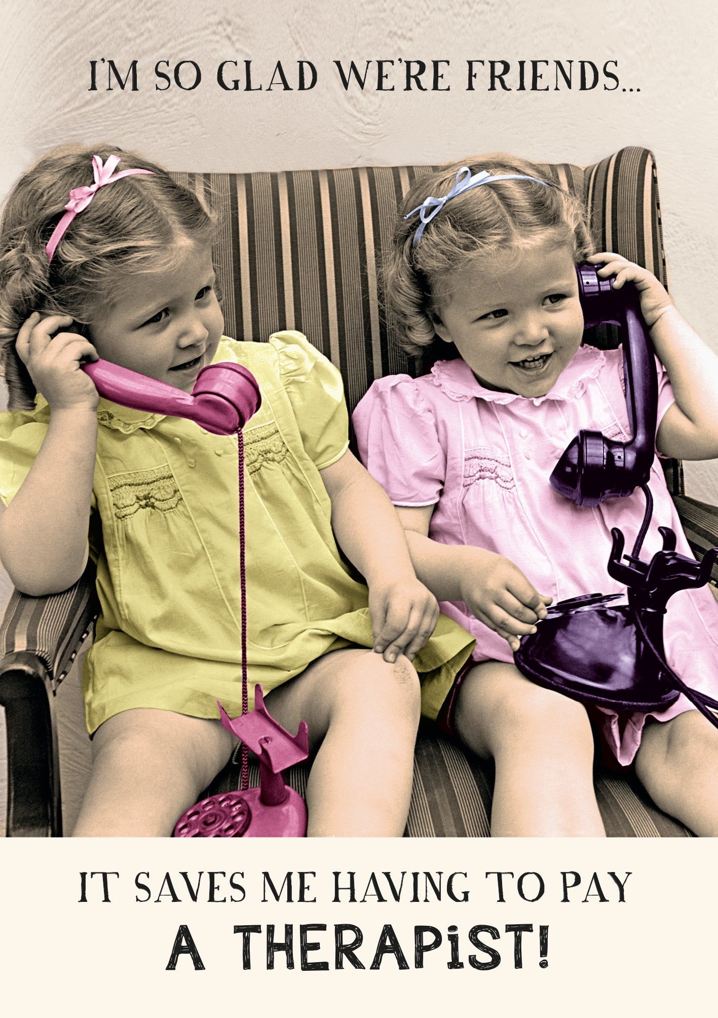 Sending a hilarious card to a great friend couldn't be easier with this fun retro theme card from the Penny Black funny cards collection. A super choice for the friend in your life that doubles up as your therapist!