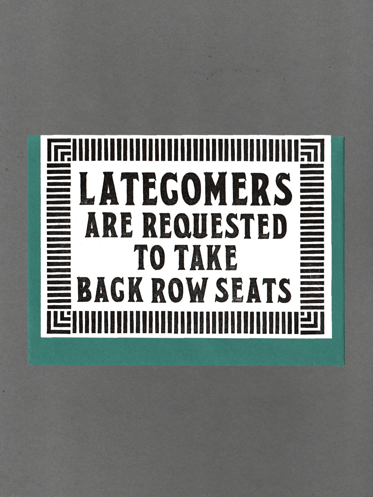 £3.25Take Back Row Seats Vintage Letterpress Card
