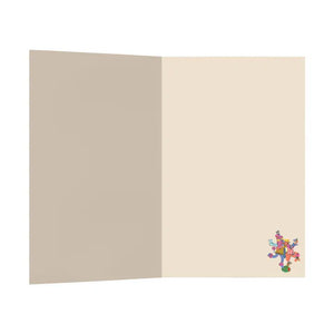 This unique and colourful Christmas card is blank inside for your own words, measures A6 in size and comes with an orange envelope.