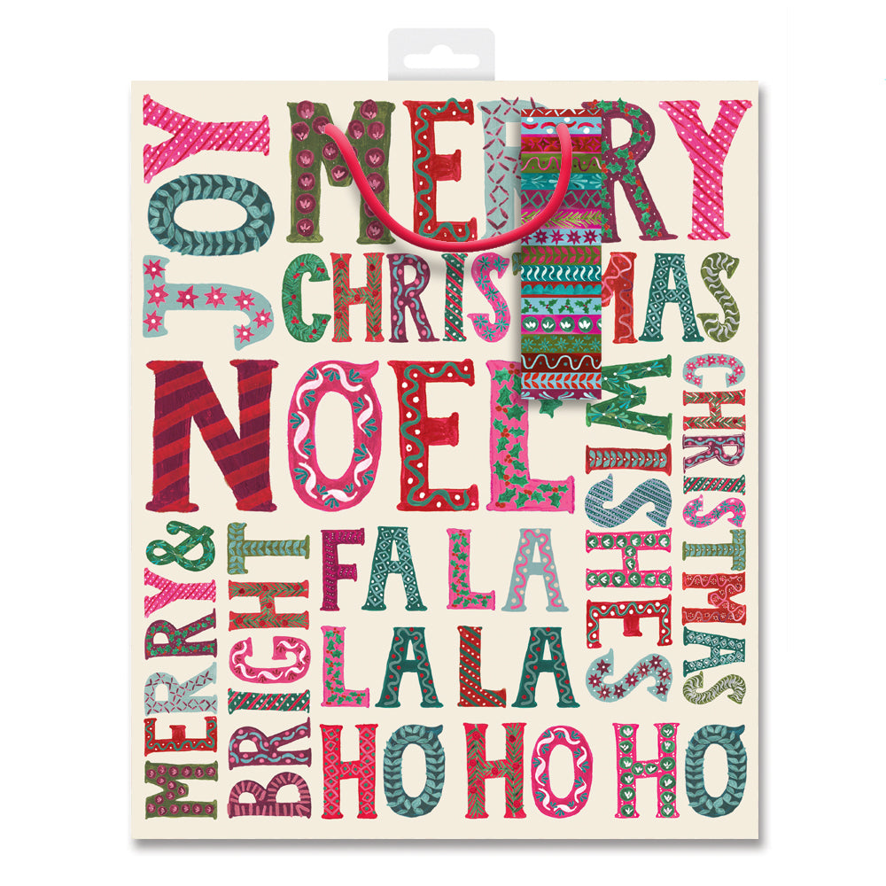This bold & bright large gift bag measures 26cm x 31.5cm and has red cord handles and a matching gift tag already attached for your convenience.