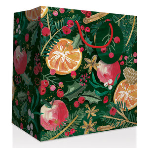 This Star Anise medium gift bag measures 20cm x 22.5cm and has red cord handles and a matching gift tag already attached for your convenience.