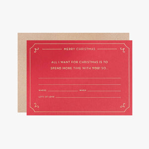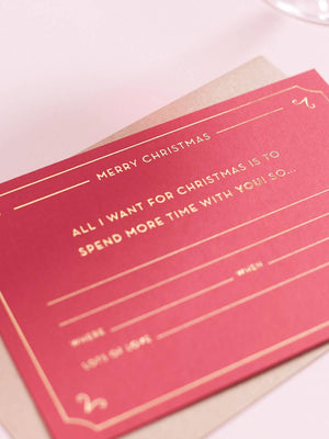 Each rich red card features luxurious gold hot foil lettering done by hand, joyfully stating: "All I want for Christmas is to spend more time with YOU!” On the card, there's space to personalise with exciting plans - whether it’s a craft workshop, movie night or a special trip in the New Year.