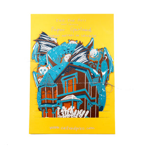 Get your home set for Halloween with this ghoulish hand printed garland, featuring ten screen printed paper baubles in jewel tones. Printed by hand on both sides on thick, hand made cotton paper by talented artisans in Jaipur this spooky garland decoration features shapes like a haunted house, bats and an eerie moon.