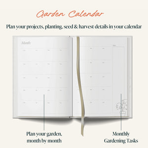 This gardening journal is full to the brim with features and content; garden planning tools with layouts and a calendar as well as a plant journal to log pertinent details for growing and maintenance!