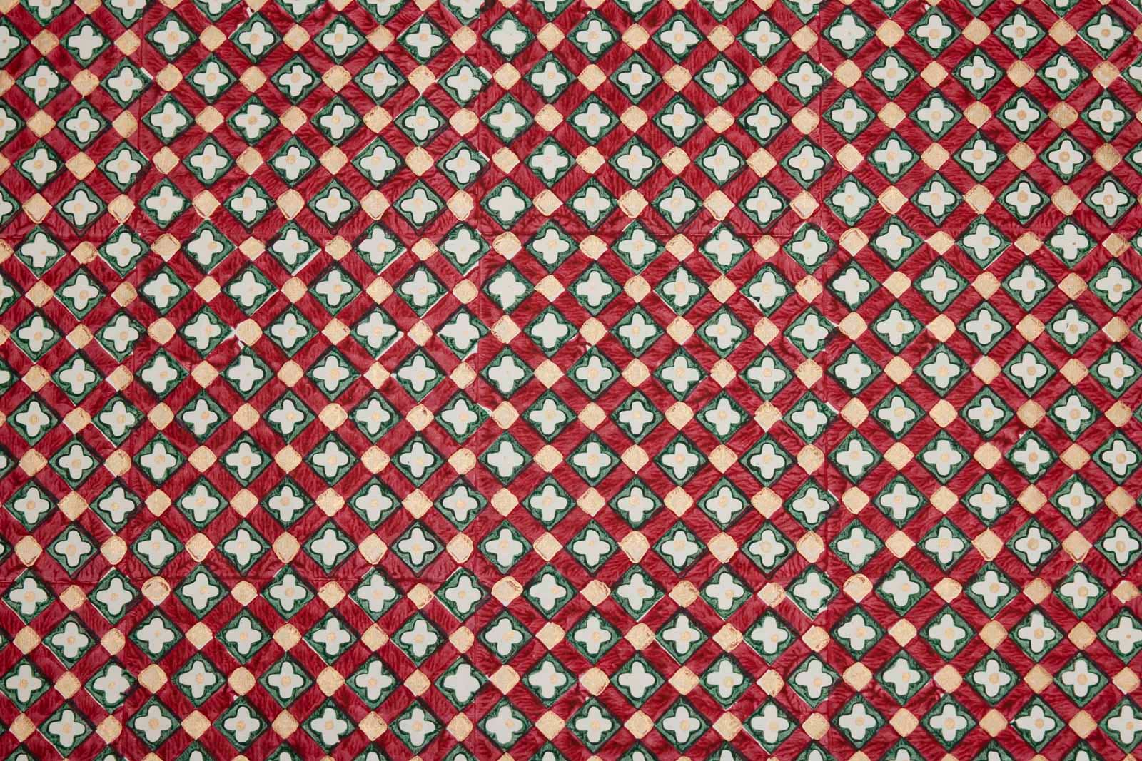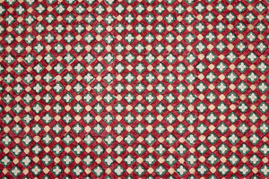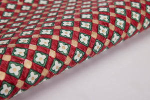 Block Printed Scarlet Floral Check Christmas Wrapping Paper Sheet